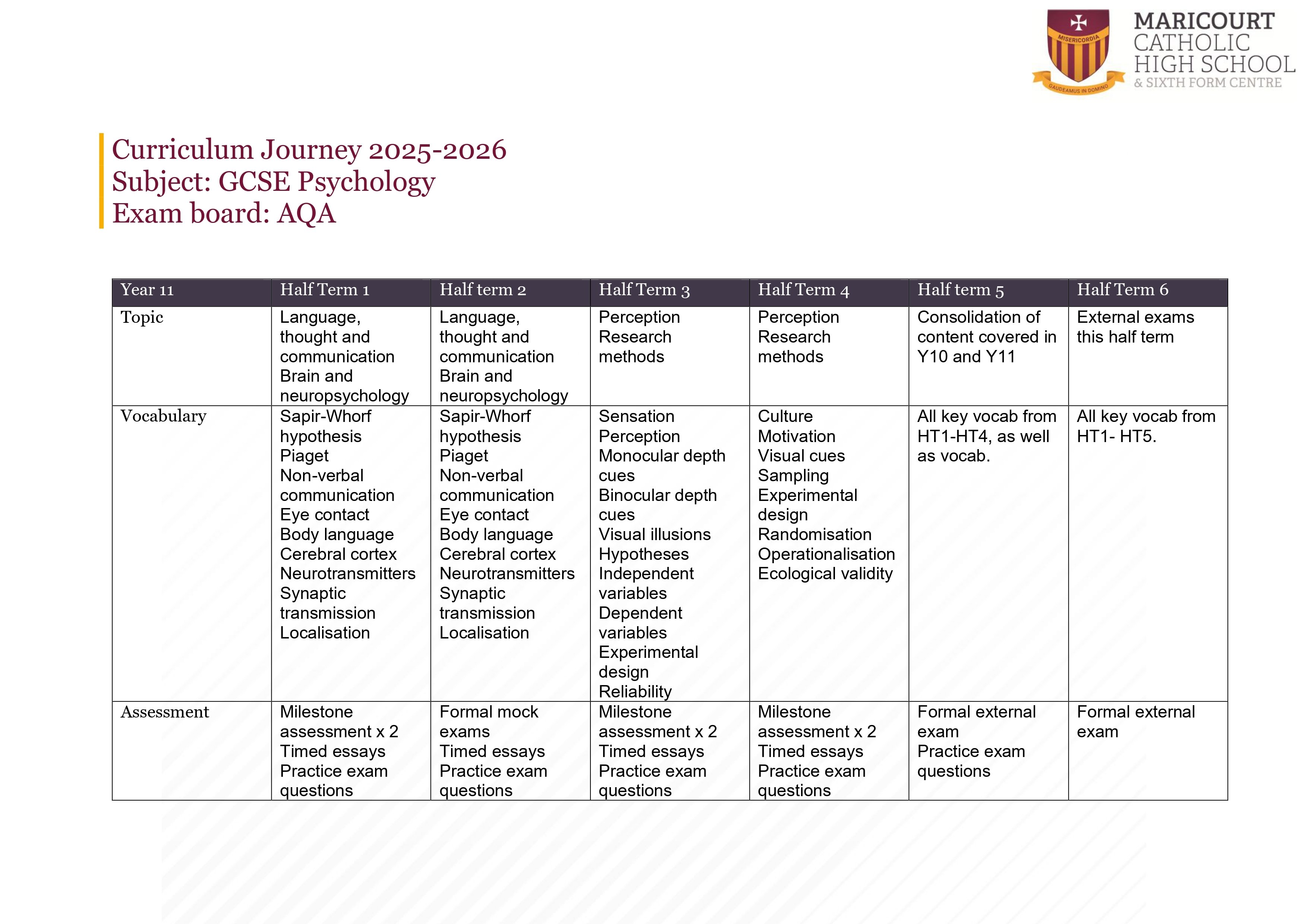 The AQA syllabus has been chosen because it has proven to be clear, engaging and easy-to-use, ensuring that students are helped as much as possible in their learning. This qualification introduces students to basic knowledge of all areas of psychology and it promotes the development of critical analysis, independent thinking and research skills.